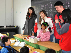 启动仪式后,由1616导航公司的杨文欣女士和歌星孙悦,分别为孩子们在新教室上了第一堂电脑课和音乐课。