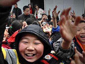 著名爱心大使——歌星孙悦在本次捐助活动中,为学校捐助了一间音乐教室,并且积极联络其他爱心企业为孩子们捐助了新的课桌椅和校服。在仪式最后,孙悦活力十足地上台致词,鼓励孩子们并演唱了‘让我们荡起双桨’、‘祝你平安’等三首歌曲,将现场气氛推向高潮。