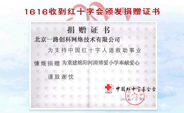 2009年12月24日,北京一路创科网络技术有限公司(1616上网导航)向四川绵阳市河清博爱小学捐赠了一间“爱心电脑教室”。